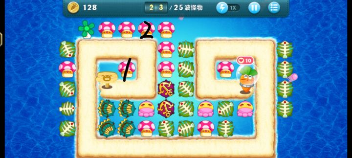 深海10 终于金萝卜过关了😭1的地方道具没了就马上放蘑菇 攒点钱2也放一个 太阳出来了就删一个放船锚炸弹 不要着急删魔法球 要保证删掉一个魔法球就有一个能出钱的蘑菇 鱼刺很重要 有钱了可以先多放鱼刺再一个一个升级
