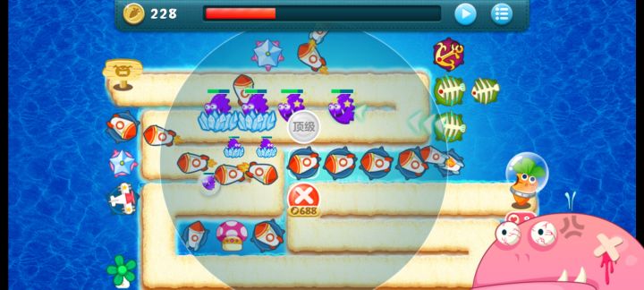 第12关很难BOSS血很厚,飞机和减速的💩还有鱼刺一定要满级。