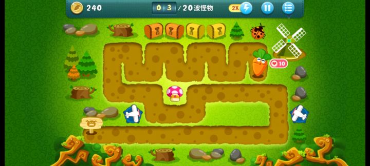 在左边再种一个飞机,把红蘑菇打出来,后续先把左边的飞机满级,红蘑菇也要记得升级。