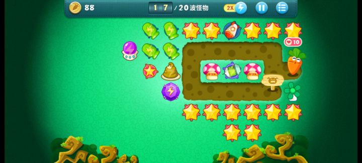 💩的位置是固定的,冰五角星出现的比较随机,如果不出冰星的话大概这局就无了,我有两次只出了火枪和紫蘑菇还有太阳,都卖了种飞机了后期也没打过,还是需要减速的冰星。反正有空位的地方都种飞机就可以。