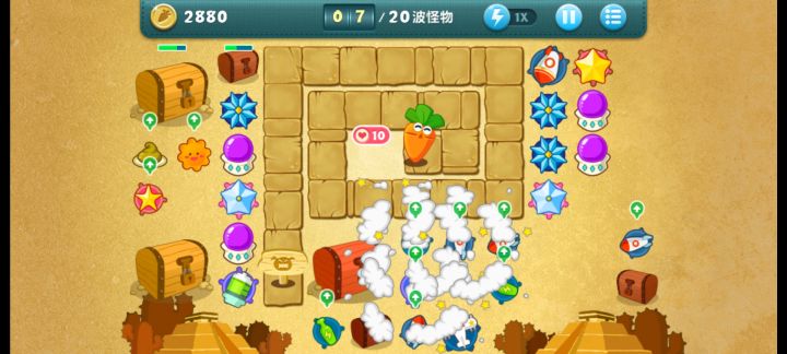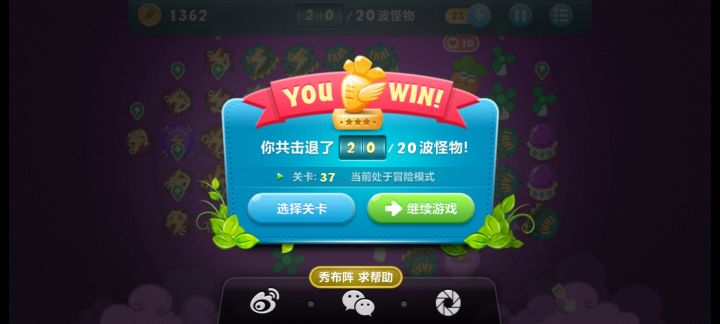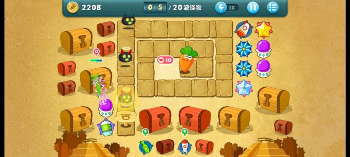 终极挑战37关,无伤全过,道具全清。这关很简单,一次就过。先种毒箭打宝箱,清怪赚钱升级,到第四波的时候能升顶级,攻击范围大了清道具也能清怪。种毒箭,升级,清道具,种冰霜,升顶级,种冰星,升顶级。左边那么多塔 最外边的基本上没用上,我后期卖了种毒箭去了,升顶级太耗钱,也没什么用,我只升了几个,主玩毒箭,稳过关。