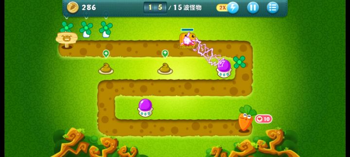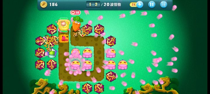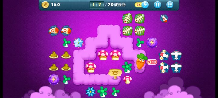 终极挑战38关,无伤全过,道具全清。开局电蘑菇,边清道具边清怪,把太阳打出来后升级一个,然后用电蘑菇专心清道具,太阳可以撑几关。升级飞机,火箭,右边大云清了之后种电蘑菇清道具。左边冰星可以卖一个,种红蘑菇,减速还能攒钱。后续就把周围的太阳卖了,种顶级电蘑菇,道具全部升顶级。