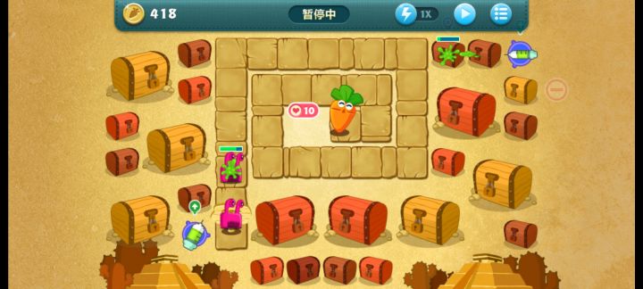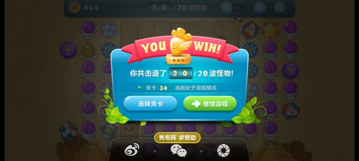 终极挑战34关,无伤全过,道具全清。前后两根毒针,后面毒针清宝箱,前面的升满级。后面毒针先依次清小宝箱,再把大宝箱清出来的四个冰霜升顶级(我卖了两个买电蘑菇补伤害,后面有点后悔,还好没死,建议最好不卖。)后面火箭升顶级了,前面毒针清道具清宝箱,以电蘑菇为主打怪,边边角角的四个冰星都要升满级,冰霜全部升满级。左上,左下,右上三个地方的宝石记得升顶级。其他空位补顶级电蘑菇。飞机和火箭看运气出不出,出了的话记得都升满级
