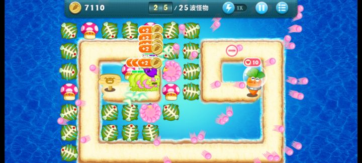 我建议大家不要先放满炮塔再逐步升级,这样的话前期炮塔一直都是低级的,打怪可以,但清障碍就不容易了。可以在开头和另一处放炮塔,这两个优先升满级,另一处的炮塔用来打障碍,两个炮塔都先升到满级再放其他炮塔。此时,开头的炮塔让它撑个几轮就没问题了,另一边安心清障碍就行。这样的好处是:既照顾了攻击范围,又能迅速清理某一处的障碍。资金不足的话,开始时直接在远处放炮塔(优先把它升满级),在怪物还在来的路