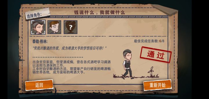 太不容易了,玩了能有半个月,最后狗了两天,仅剩最后一丝血量,通过了不过这个结局让我有点想吐血,还以为最后是成为富翁挥洒钞票,这冷水浇的