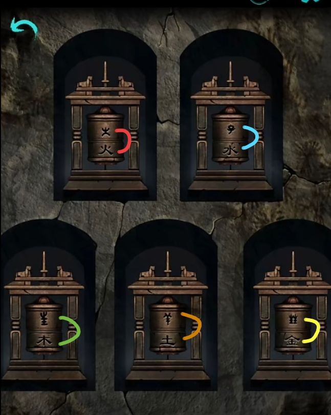 第六章:风雨停1.(通道)点击右边墙上的挂布(注意看符号及其对应的图案和红色黄色穗子的高度)2.点击左边的石窟,点击左边石像手中的鼓面,注意看符号亮起的顺序3.根据鼓面符号亮起的顺序和挂布图案对应线索,按顺序点击右边石像手中的鼓面4.触发机关,获得【石鼓】5.点击门,放入【石鼓】6.根据挂布穗子的高度,按右右左右左右右的顺序拉门环(红色代表左边,黄色代表右边,哪边比较长就表示拉的是哪边