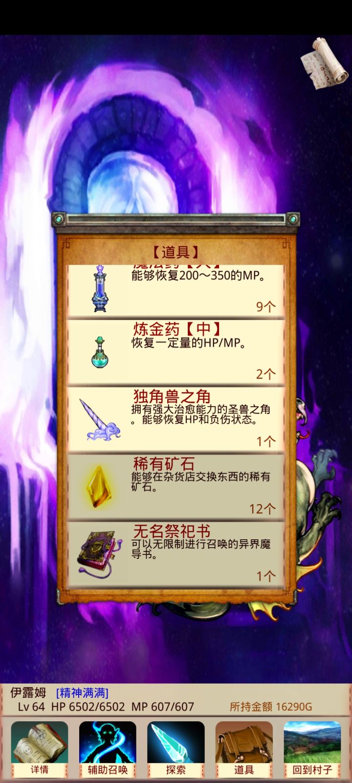 5、打完BOSS爆的东西,直接回村儿用,加属性。