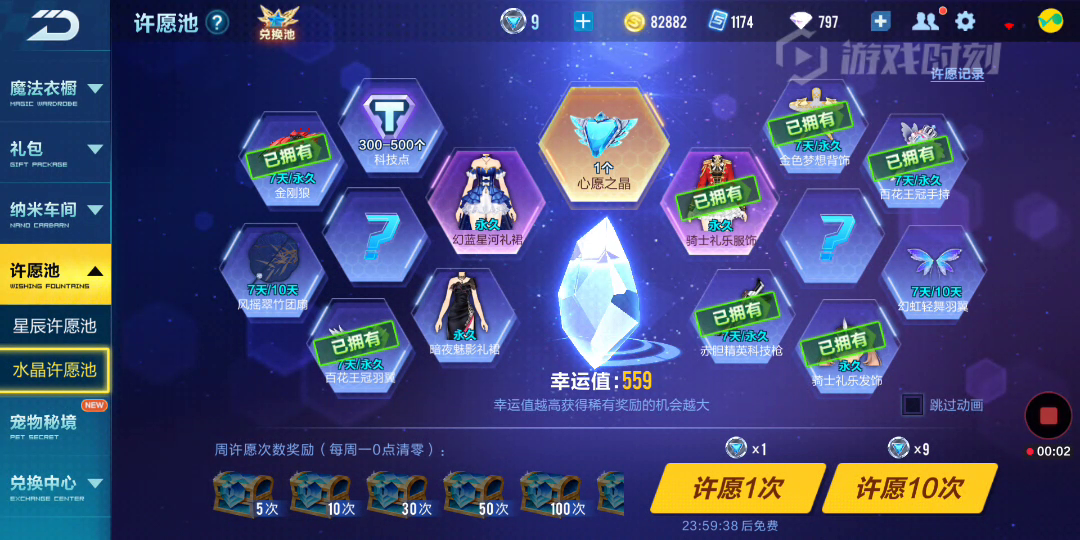 第一次是明明停在了水晶却来一双元气假日鞋??这一次单抽停在了 永久 暗夜魅影礼裙 却来了七天??是我一个人被恶心到还是本来就有这种bug??真的恶心 口区