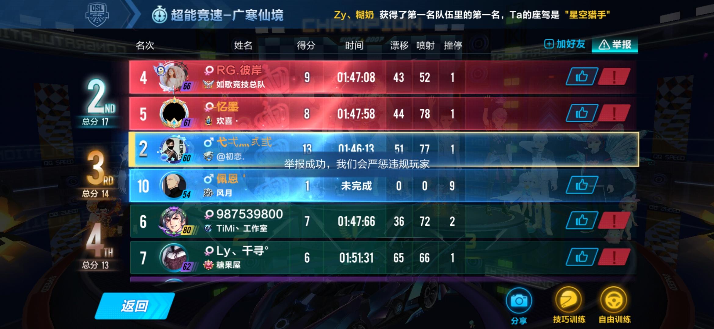 游戏一堆bug,打算让玩家给你修呢车队赛举报系统也放假了?还有街区车王,空榜挑战不了显示已被占领,是你们系统bug还是新出了个什么占位的挂