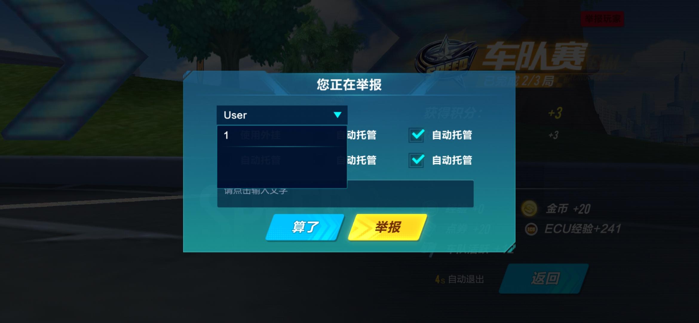 为什么这种挂机的人,举报没用?还观察?他有漂移有喷射?什么鬼垃圾飞车,有点想弃游了。最烦的就是这种队友。跟王者弄点信誉分得了,多少多少分以下只能跑匹配,娱乐不能跑因为娱乐有箱子。