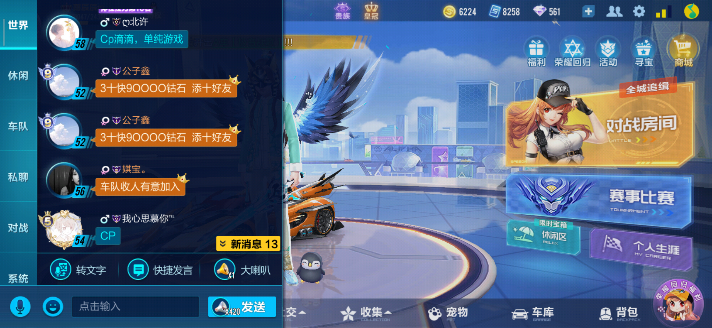 第一:这次更新之后玩飞车网络就差,这是设备还是游戏问题,其他游戏就没有这样的,第二:跟女朋友玩邂逅之后,再玩了48人,出现6个和女朋友一样的头像?what ?are you kidding bro ?