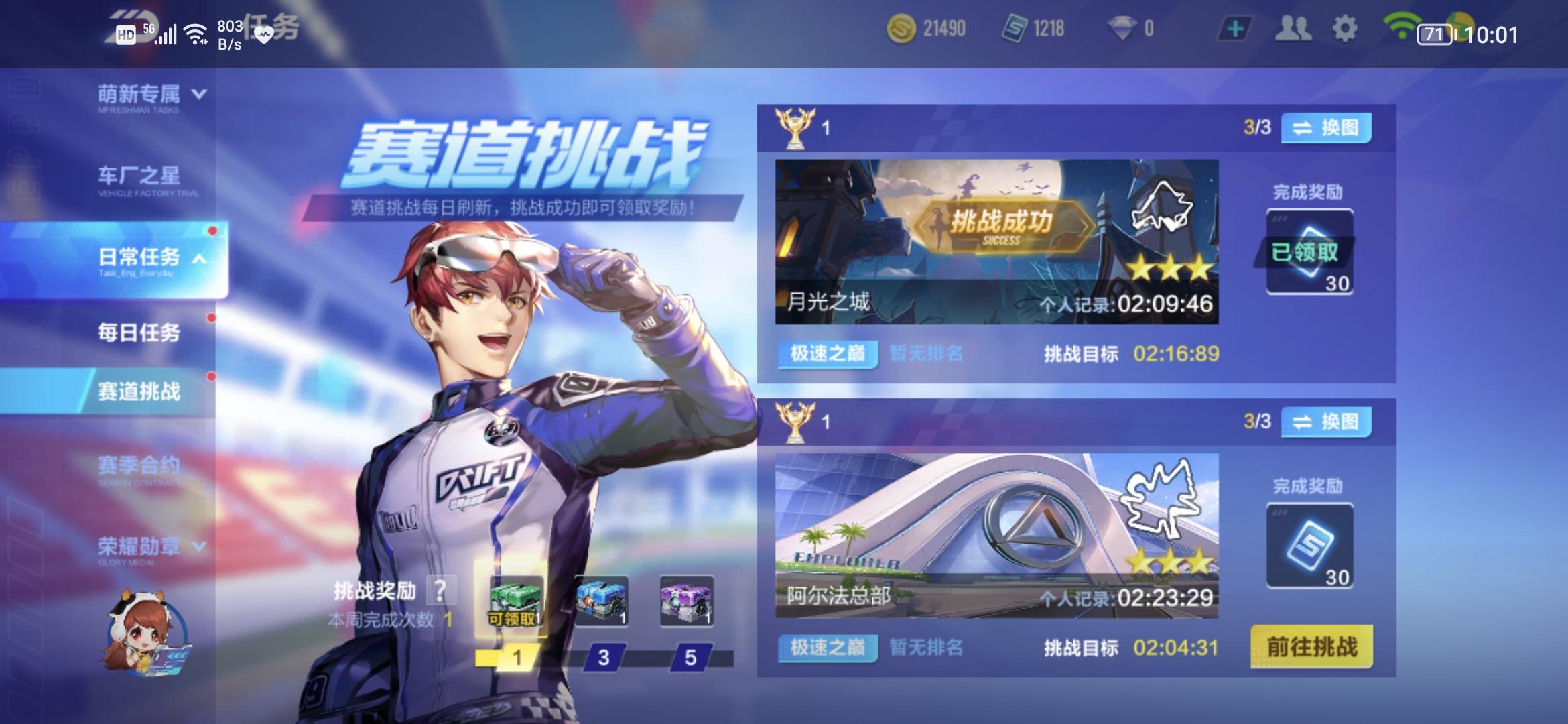 下面那个挑战有问题我这个时间是铜牌进了2分34貌似就是挑战成功我跑完显示了三次挑战成功,但是这个页面领不了。到底哪个是真的这2分04得职业车神水平能完成吧!