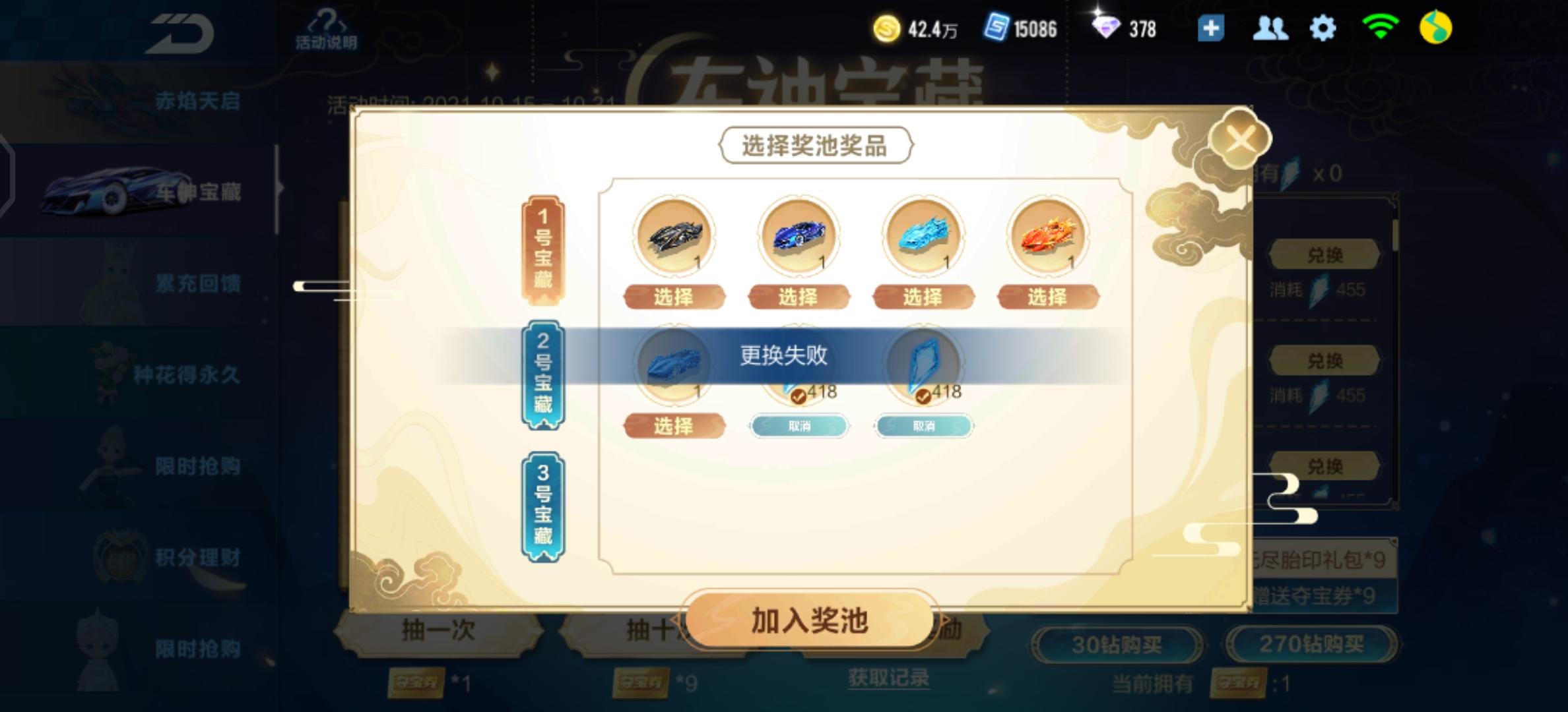 这个车神宝藏为什么一直显示更换失败啊,都不能抽了😩