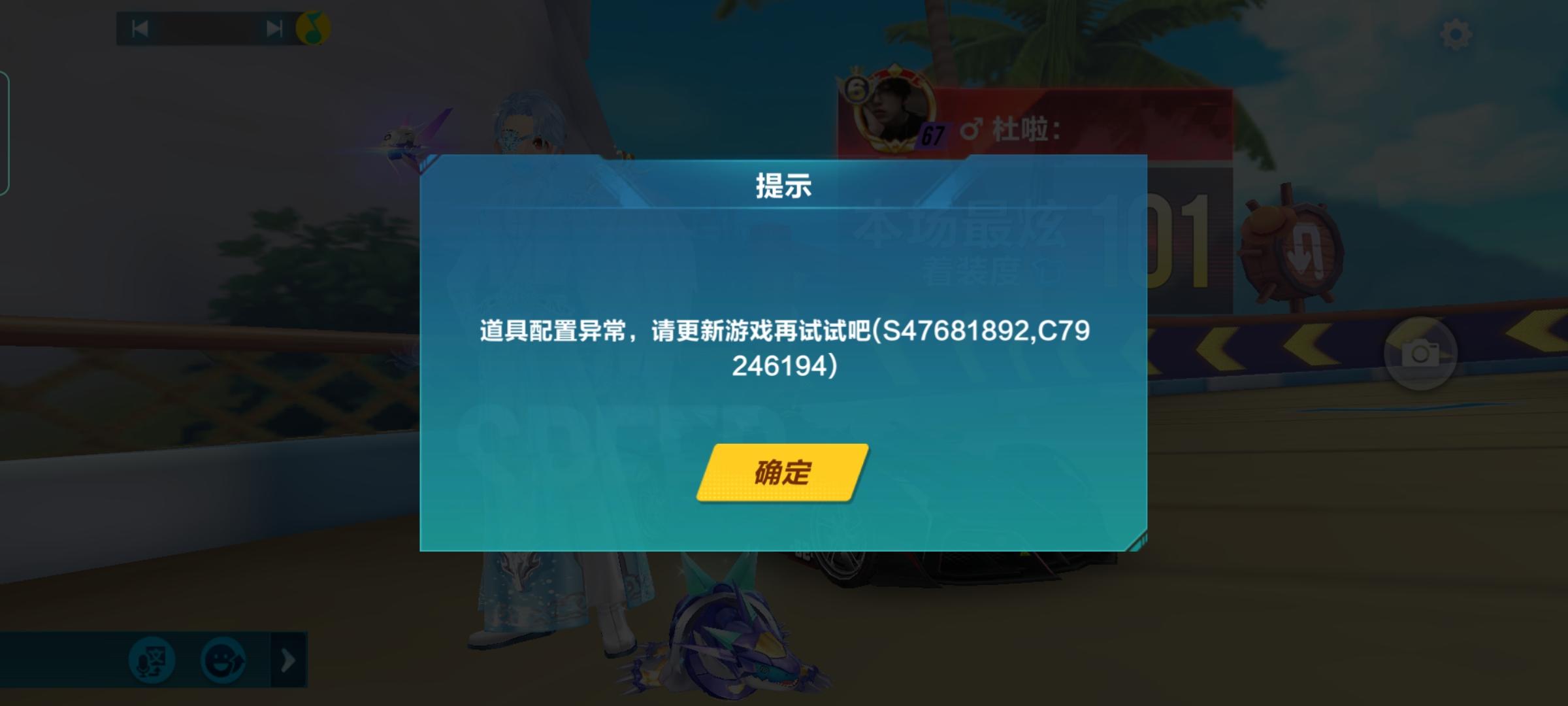 不知道你们看到这个情况会不会起鸡皮,但这个跟着我跑完了一场在主页的时候有,匹配的时候没有,游戏开始的时候又有还有玩道具的时候排名和道具攻击显示的会有延迟,玩竞速,具体的不记得了,只记得是碰撞方面会有bug