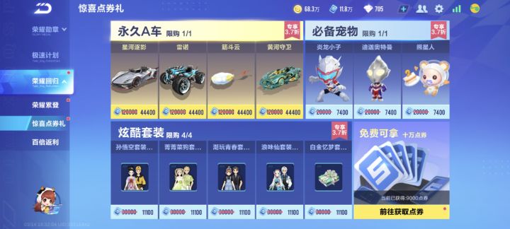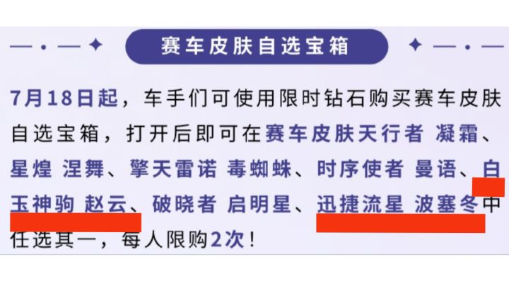 投票7月18日购买限时钻石购买赛车皮肤自选宝箱(7选2)