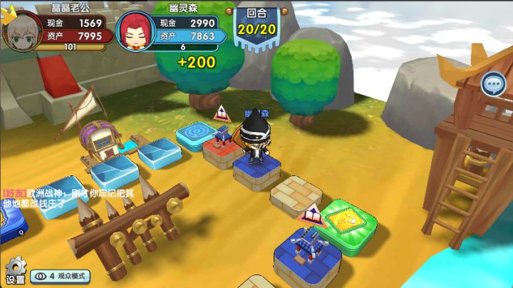 我 是十八回合开始观战的,(开始指指点点,最近很少敢随便指挥别人了,不过还是有着两三个特别要好的可以随便评论哪里玩的不行)。前面的就不说了,真郭嘉是因为特殊原因没法专心玩,好在对面失误很多坚持到了这里,20回合真郭嘉有两次决斗机会,俩人都有不少宝物和核武。第一次付钱打架,真郭嘉破了对面烧鸡,对面第三回合用大力不控血。才有了真郭嘉第二次不付钱破独占,成功打赢。马云禄两下武器真郭嘉就剩6点血了还是挺险