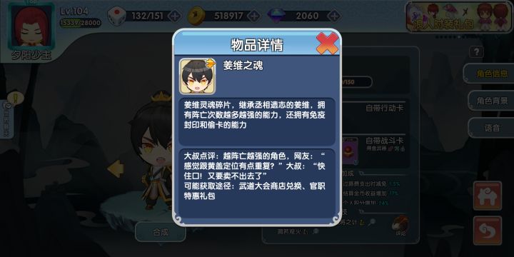 不求这武将加强什么,给个觉醒,让他能找个方式搞点武器牌装备卡,或者和夫人一样来个搞钱的能力也行啊😟