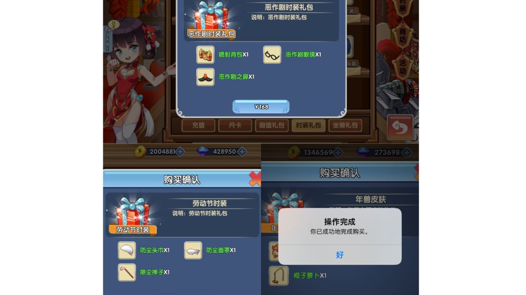 四一愚人节、五一劳动节、新年皮肤礼包(注:每年只出现1次)
