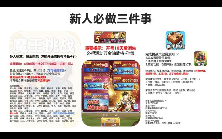一级的刘备+一级的真黄月英+一级的孙策足以。月英手里还有一个决斗呢。 很多新手都在问,就普及一下游戏内达成的常见共识。进红色房间被踢,一般是小号私房;发完求助房主跑了,同样是小号,可以继续打有桃子的;角色顺序,根据进入房间顺序,顺序不对必须重新进或换角色;长时间没人进或新手没人帮,发几分钟某某房缺某,或者官群商会群提前固定组人;商店打满七天搬空,活动是15天,两个BOSS轮流,新手可以打突兀骨,不