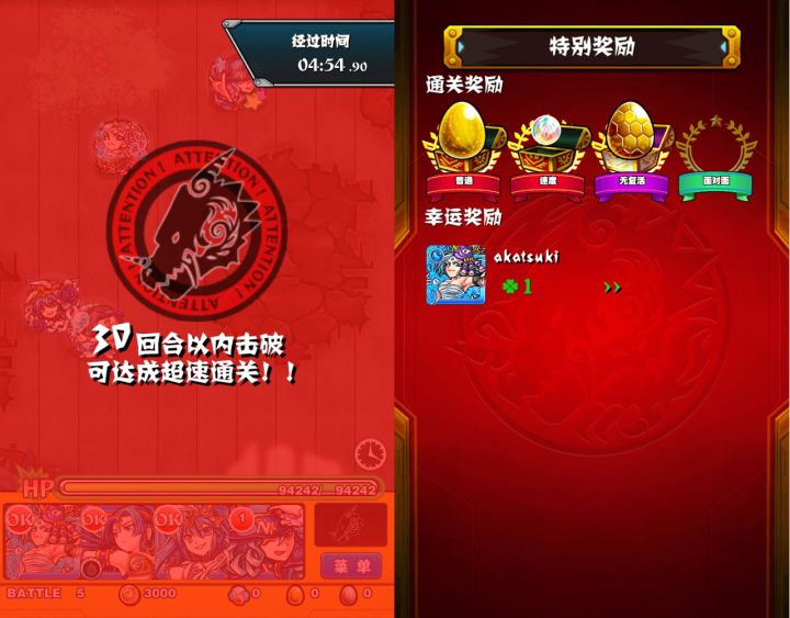 在指定的回合内通关即获得快速通关奖励