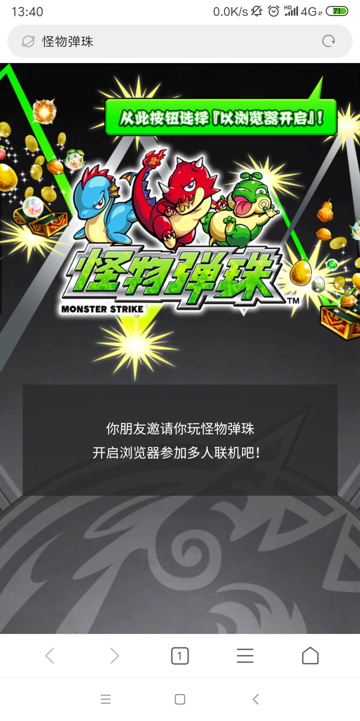 我这游戏成单机了,进了别人的组队群,点开链接用浏览器打开,但是不跳转到怪物弹珠是什么个情况,我才多半是废了😵😵