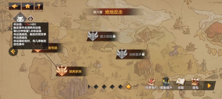 命运值为负真的很痛苦,小怪摸我一下一万六了😅,恶性事件像个毒瘤,触发之后还会降低幸运值,一直恶性循环然后像我这样😅,可以把命运值卡在一个中等位置,出预言事件和恶恶性事件的概率都比较低,看见出恶性事件就等一段时间回点命运值再打,这样应该是前期推图升级最快的办法
