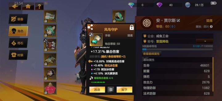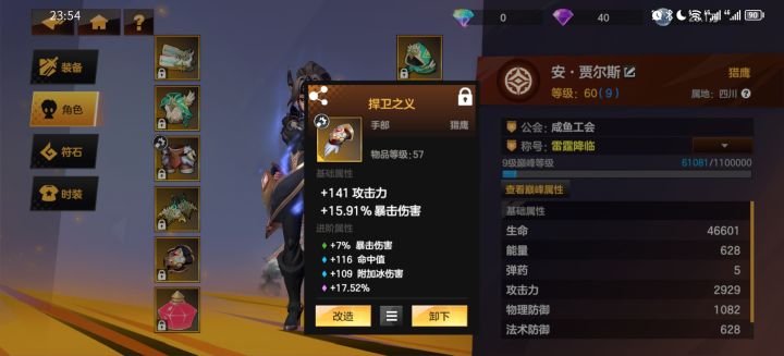 第一个装备(风鸟守护,攻击力属性不生效,)明明这个手攻击力更高,但是穿上比第二个手套(捍卫之义)后,第二个比第一个高了253的物攻。
