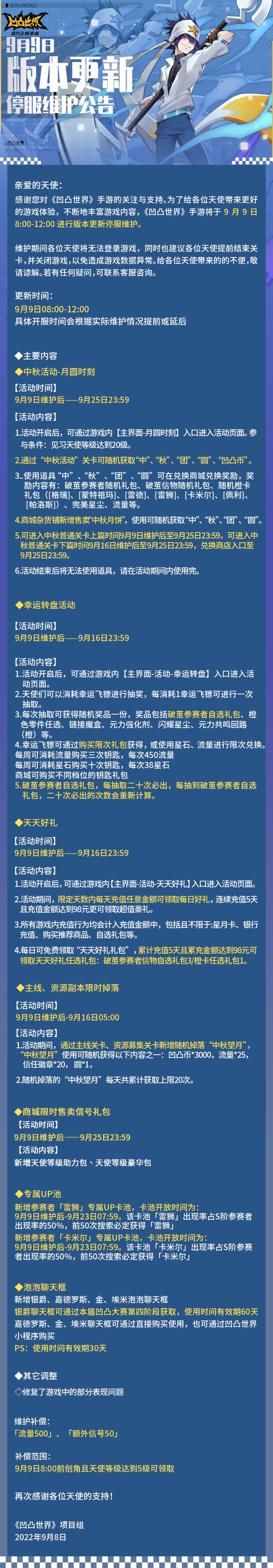 《凹凸世界》手游9月23日版本更新停服维护公告