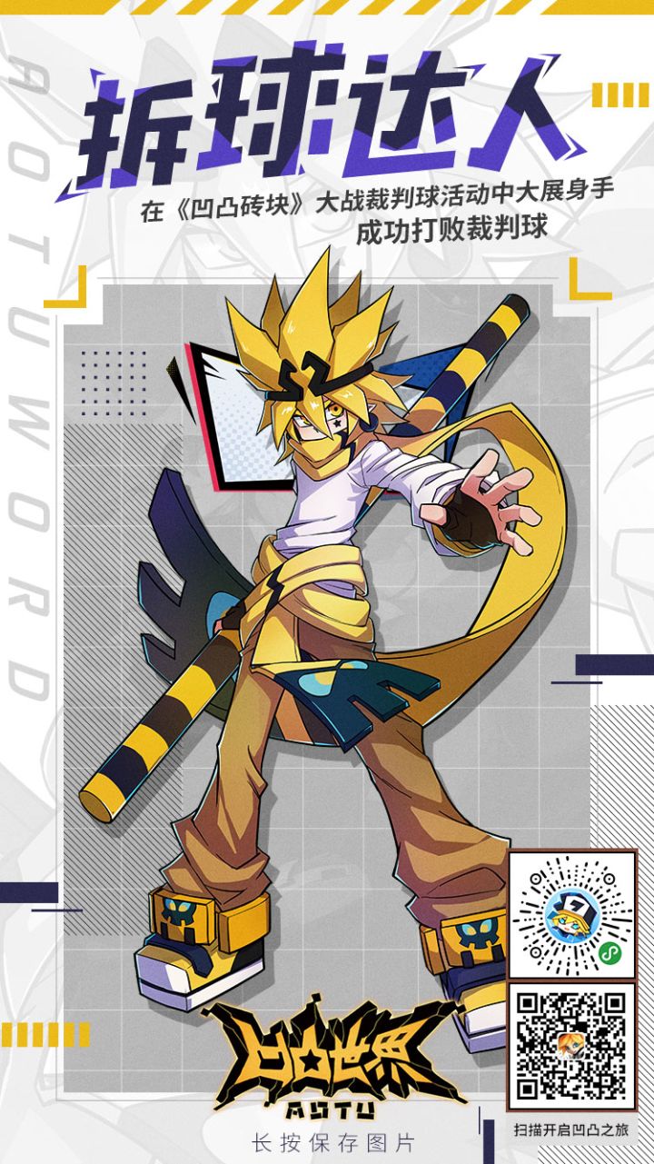 作为《凹凸世界》秩序与颜值(并不)的代言人,裁判球常常收到这样的评论:(以上为tap玩家评论)我堂堂裁判机器人,岂能让你们这样欺负的!不过,既然大家这么诚心诚意“请求”了,本球就勉为其难牺牲一下自己吧。5月1日-5月3日,每天晚上19:00-20:30,参与《凹凸砖块》1V1对战模式,就有机会匹配到裁判球,打败裁判球,就有机会获得 《凹凸世界》手游内测资格*1、《凹凸砖块》金币*666、