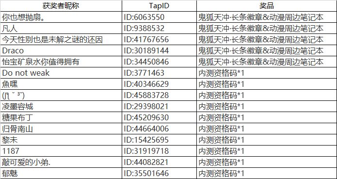 活动获奖名单如下:恭喜这些参赛者~请各位主动添加裁判球的QQ:3312376225 领取本次活动奖品~领奖时间:6月24日—7月11日添加裁判球QQ时请备注【鬼狐】,裁判球会在领奖时间结束后统一发放奖品!未获得奖励的玩家尽量不要添加裁判球哦~-------------------------------------------------------------------------