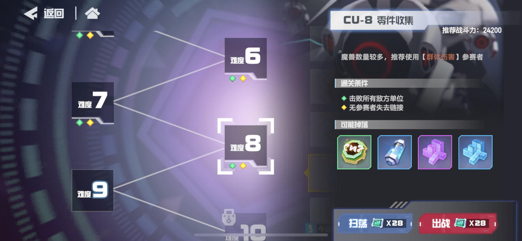 紫色零件一次不掉落???800信号去扫荡,这是多低的概率?还是压根就不掉,难度7就显示有紫色零件了