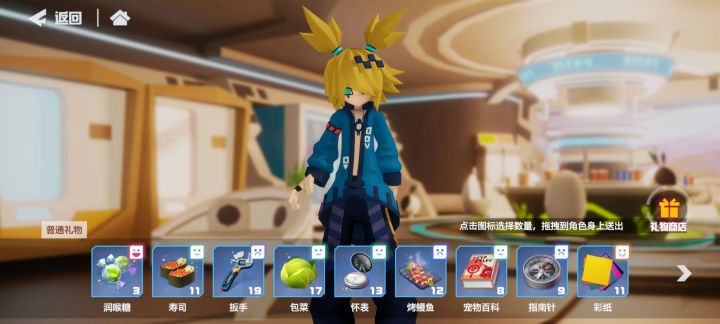 超级喜欢(+30):南瓜🎃一般(+18):润喉糖🍬/寿司🍣/包菜/宠物百科📖/蔓越莓曲奇/蜂蜜茶🍯/自制贺卡/大会员/巧克力🍫/人气手办/漫画书/猫猫🐱/法棍🥖/苦瓜奶茶/甜甜圈🍩/饭团🍙/草莓🍓/棒棒糖🍭/爱心便当🍱喜欢(+24):橘子汽水🍹/烤鳗鱼🐟/三文鱼/麻婆豆腐/鸡腿🍗/痛包/哈密瓜/柠檬🍋/新鲜蔬菜🥗/芒果🥭/炸薯条🍟/牛排🥩/烤串🍢讨厌(-4):扳手🔧/怀表⏱️/指南针🧭/彩纸