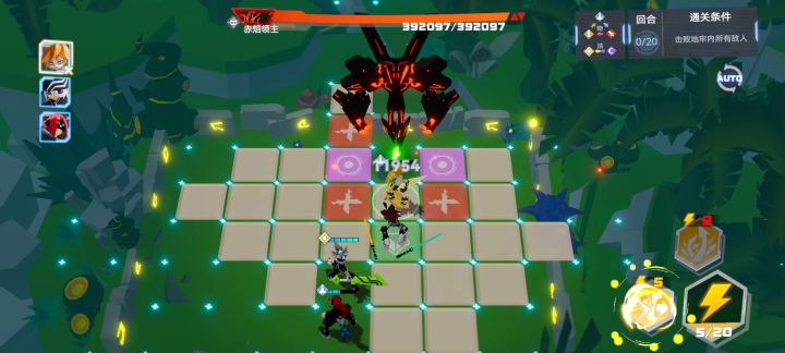 参赛者选择1.雷德(白给)2.破茧金3.破茧安迷修(2S)4.破茧格瑞。参赛者顺序在战斗前都可以在右边的角色栏修改,按住想改位置的参赛者上下移动即可。赤焰领主开场就一个大招+普攻,除非练度够高,不然开场必送一个(说的就是我自己)。触发战斗必须按照图片走位,确保斜线队形,也可以走右边。赤焰领主放大招时不会移动,且大招的攻击对象必须在普攻范围内(就是下图普攻范围的八个点上)所以除了开场的大招不可避