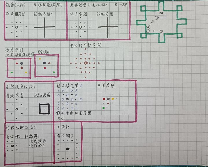 参赛者限定:破茧金、雷德、破茧安迷修(ss)、破茧格瑞。符号解释:彩色点点代表参赛者,黑色点点代表boss长脚鹤,黑色点阵代表boss攻击范围,绿色边框代表场地范围。进入大赛前参赛者的选择顺序会决定站位,我的选择是1.安迷修 2.雷德 3.金 4.格瑞(金和安迷修可以换位置,格瑞一定要站最后!)一、直线进场触发战斗,不出意外的话boss会原地攻击雷德,boss仇恨默认为雷德(优先攻击雷德),