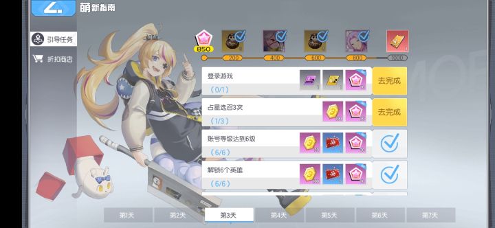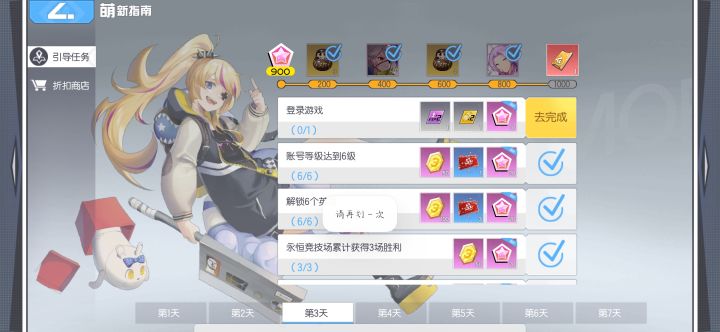 星期四更新后就有了这个萌新指南,之前没有萌新指南,可能是官方想给我们老玩家送福利,但是今天星期六,星期四,星期五,星期六,三天的时间,为什么我这星期四的萌新指南登录了领取了登录游戏的奖励,但是星期三的却没有领取,而且这七天总共加起来根本不够1000