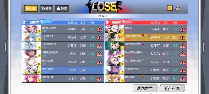 我还是只打战场吧,毕竟zc就算是输也输的不难受,这太糟心了,当我冲上去的时候,周围一个队友都没有,最后一看等级,好家伙,我方就俩超过100的,对方就一个没超过一百的,这TM打个屁啊,经验都差下了,ty你匹配会正负五六百级我不说啥,但最起码双方实力平衡点啊!混蛋ψ(`∇´)ψ!