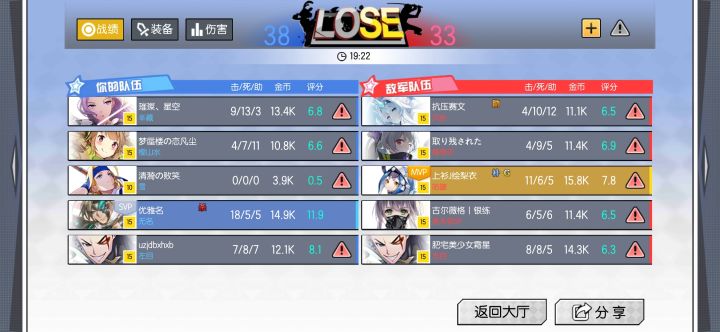 管不管演员,开局就开送,十一分钟,0-11,伤害都是不小心打到的,开局就送塔 四分钟六个头,这星星不封号直接退游,氪了几千匹配到都是这些垃圾,要不是我朋友带不用玩了