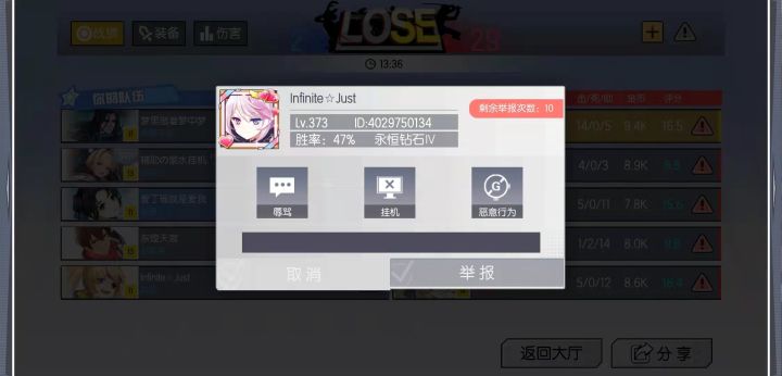 打个匹配,打成0/9,我说举报他,他态度还嚣张得很.....我说发帖子给官方看,他还说他有改名卡😭😭.......怎么@官方呢,能不能制裁一下这两个视规则如无物还这么嚣张的玩家,想看到这两个人的结果是咋样的。😫