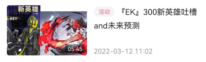 来看吐槽啦,新鲜的吐槽【『EK』300新英雄吐槽and未来预测-哔哩哔哩】 https://b23.tv/mnDIWYQ
