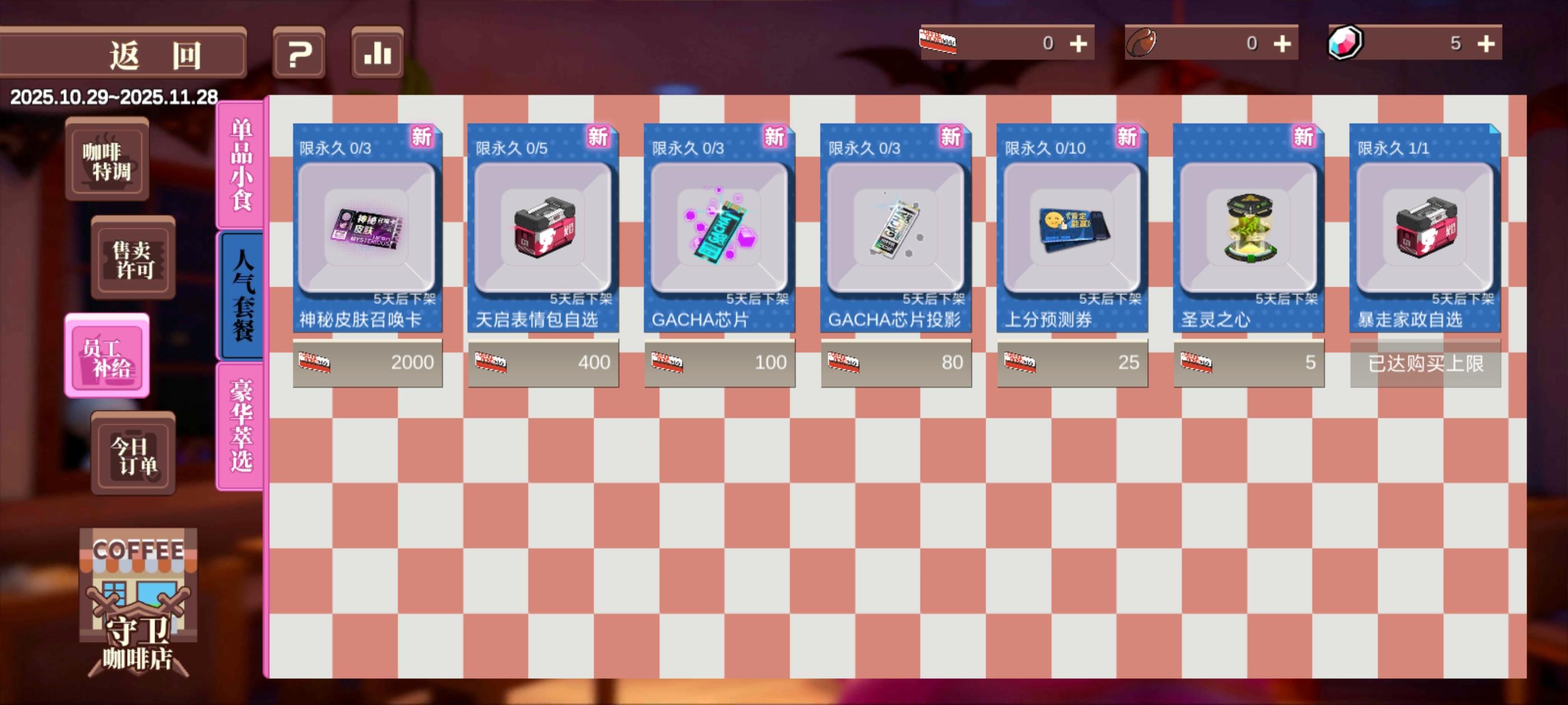 更新前13号的截图,我还有1048咖啡券没用掉,想换个神器石头,我也不是zc玩家,就拖着拖着忘了没换,更新后一看道具刷没了,道具兑换可以看到,次数没用掉,1048我总不可能换一堆垃圾道具吧,也用不上,跟客服反馈跟似人一样