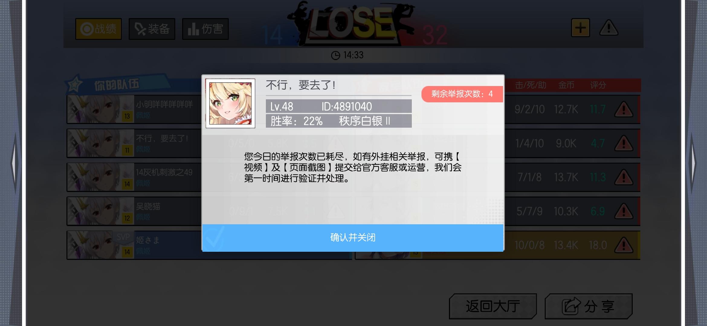 今天第一把,本来想转盘做个活跃,结果恶心我是吧?你游这样还想留韭菜呢?看看这匹配机制吧,对面七神器,家里剩下三神器还都不会,仿生人上线路线都固定的,摊牌了明演是吧,匹配机制不好建议别做PVP了,改做单机吧ty,没准玩的人比300多呢。。。我就好奇了,一场对局如果我不爆杀对面就输是否正常,如果正常那我觉得这个游戏应该是单机游戏了。反正这游戏现在没有能留住我的地方了,福利lj,机制lj,服务器lj,讲真我还真没见过有这么多漏洞还活着的游戏,也许这就是300吧。(笑)