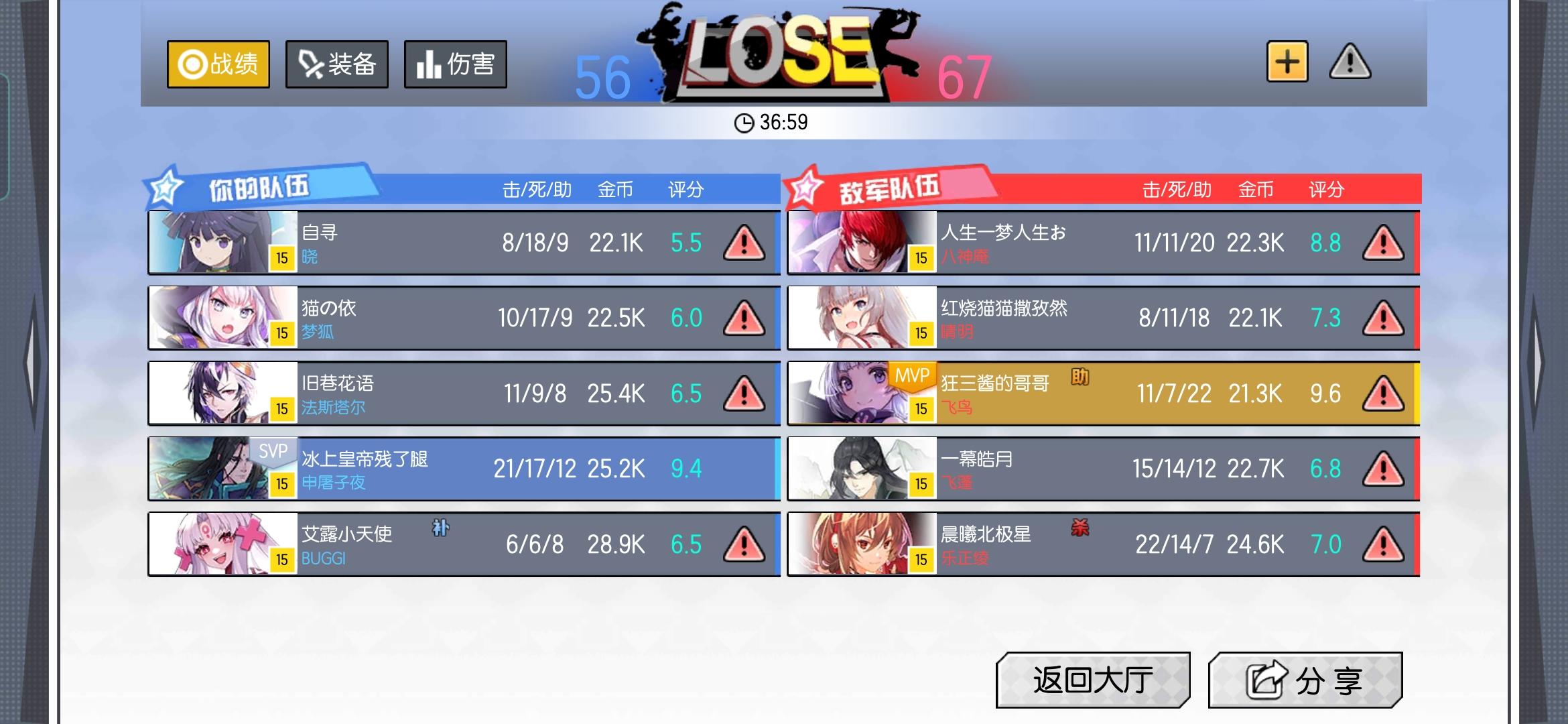 建议对那些演员惯犯,故意送人头的家伙建立黑名单,临时有事挂机可以理解,但故意送人头,还给对面报视野就太恶心了,建议以这种理由被封号的玩家五局以上直接封死
