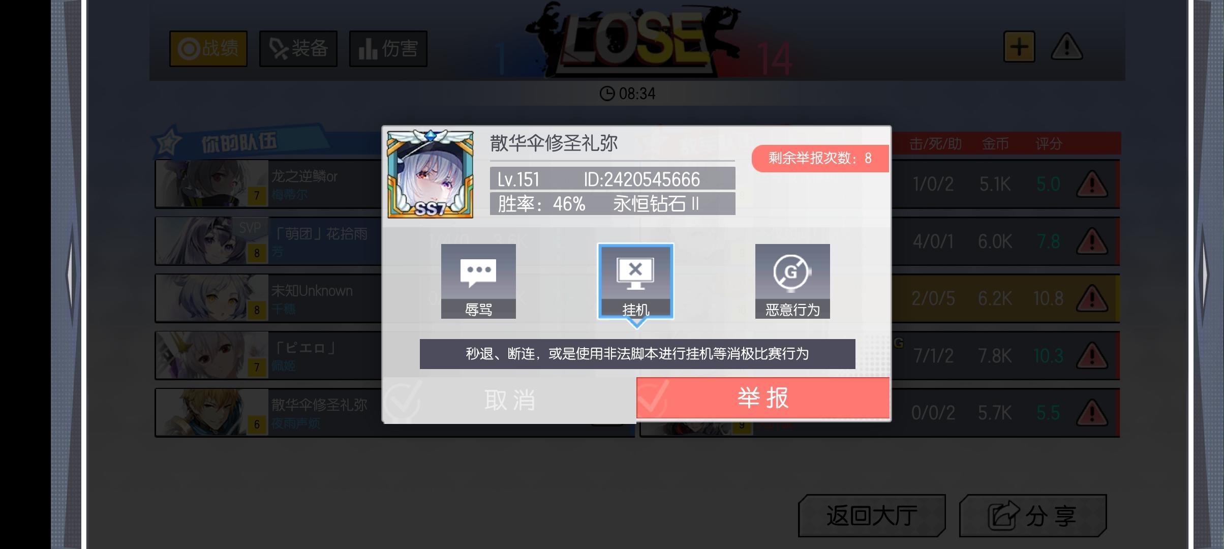 今日牛马要求加强举报惩罚比如挂机多少次封几天什么的[滑稽]