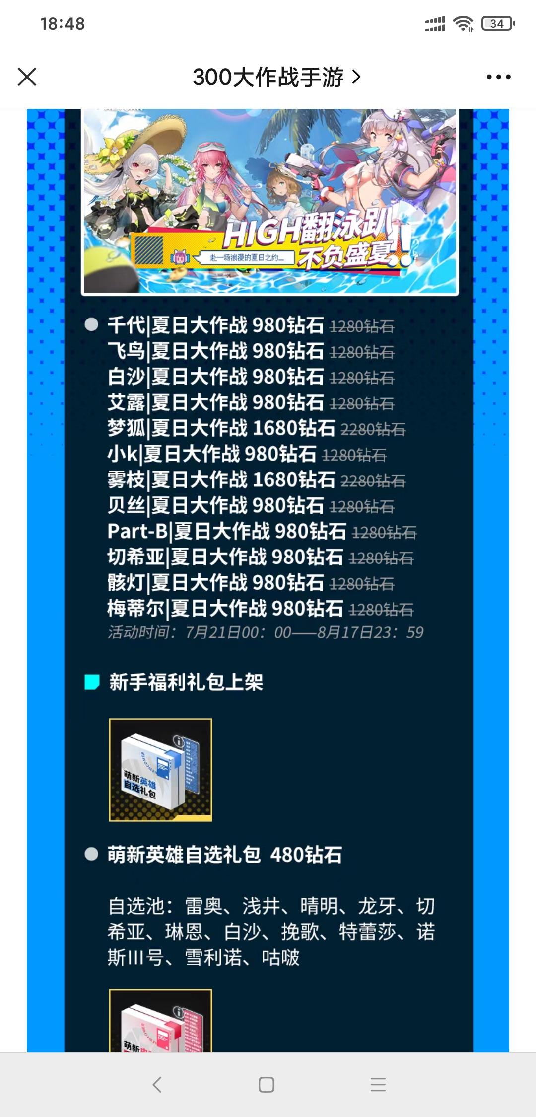 好!梦狐的夏日大作战比我当年拿钻石买的还便宜。这说明300英雄真好玩。😁