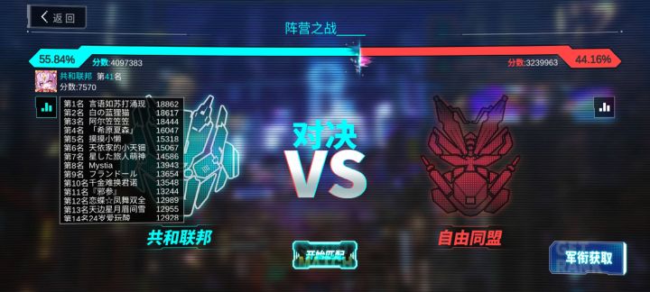 本来一开始是第9名,后来换小号去打了三局任务 回来一看已经41名了,奋起直追了一波积分贡献者前10%x3,但是就算是两次都是同一个阵营,且都是该阵营的第一名也才300个,全拿到要1093个(等比数列前7项和),就算只拿最高的也得729个。估计以后会常开吧,但是6个点,说实话爱谁打谁打吧,真的没意思这模式真的很像老传奇的攻沙,一堆人就为了个破称号一直刷分。但是攻沙才一个点,你这6个点多少有些折磨