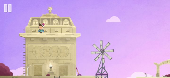 1. 这一关的主题是巨大的雕像,主要是背着鸟一路解除封印拿到诺娃碎片的一关,出来后向右走,右边走到牌子处切换场景2,爬到下图的位置,切换到场景32. 场景3,先到中间将箱子推下来,再把箱子推倒紫色台子上,站在台子上,上去3. 上到最顶层,左走,到场景4,顺着tizi上去,去到场景,5,从左边tizi上去,拿到收集道具,这里有个谜题,完成后下方暗门处拿到镜子,控制四个按钮,将红字处的线连成下图,