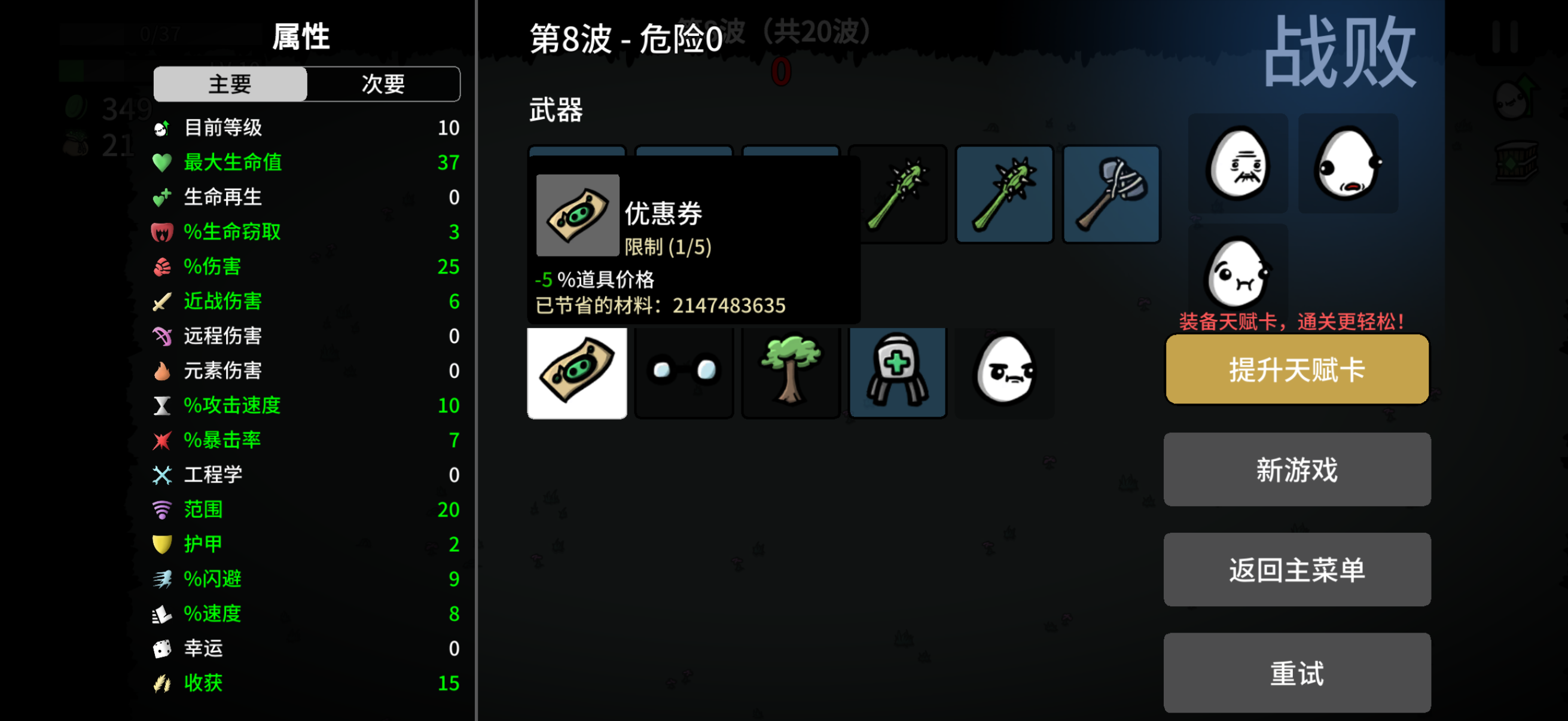 死亡后优惠券的“已节省的材料”值错误