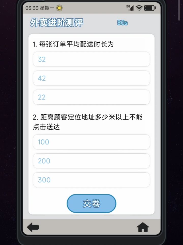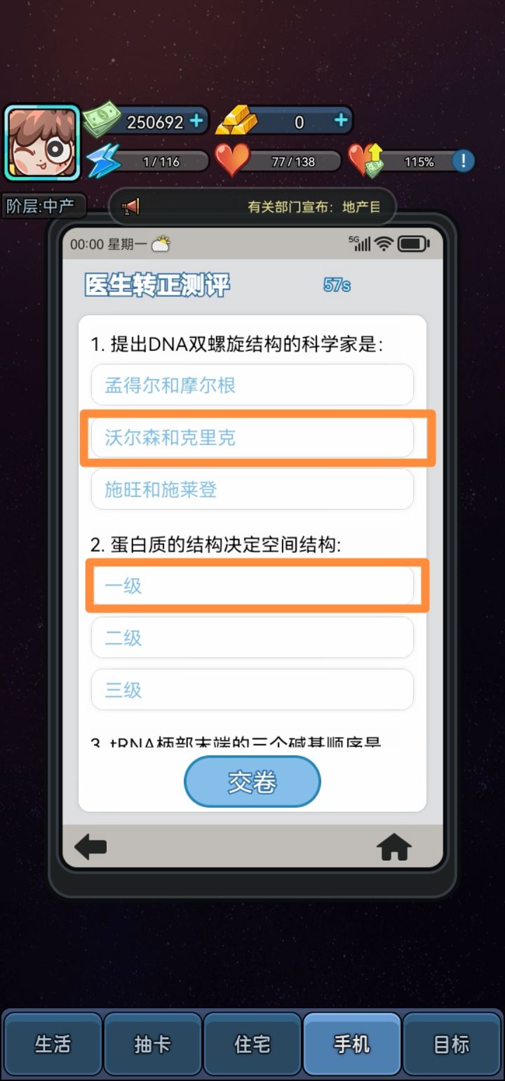 一、考试攻略部分答案只有60-80分,能过就行。前期的部分很简单的考试没有记录:外卖2-80分:ACBBB3-80分:BCCCC理发师:2:CABCA3:ACCCB画师:1:ABCAA(80分)2:CAACB3:CCCBB码农1:CCBCA2:BABBB3:CBABC(60分)医生:1:BAACA2:ACCBB3:CACCB制片人1:BBABA2:BB