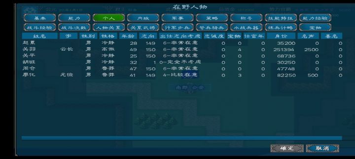 首先我是被该游戏的评论吸引,喜欢里面的多样性的剧情以及ai不是那么死板无聊,但是好歹说下具体属性啊。。比如统治。。。民心。。。统治是决定城内武将背叛,造反之类吗?。。。因为我玩大多三国策略游戏都是民心决定了统治,还有个补充是什么。。。招贤显示不能用,应该是要先进行搜索,搜索到人才之后再招贤吗?武学影不影响军队实力。。。还有个风度。。。或者哪位大哥先给我分享个简介贴,初期攻略贴。。。搞得我一开始直接