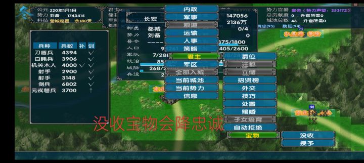 估计是bug(山水版本据大佬说是半成品),刘宠是异族而且无步兵兵种(有异族骑兵但要5w但刘宠开局就4w)开局自带1000弓兵,试了一下基本死局(修罗),可以卡火伤眩晕打赢曹操等势力但攻城不可能,弓兵只有0.2的伤害计算率我开的5倍城池伤害就打了8点…但是入门一般还是能玩就是费时间(我没有开武将福利,开武将福利可以轻松破局)。 首先刘宠在这个剧本是异族意味着基本不能找义理大于2的武将(大部分高战力武将义理大于2),其次前期只能找弓兵(初始城池只有弓兵和匈奴骑兵)。可以卡眩晕加火伤轻松打败曹操势力的开局4000步兵,但攻城是个问题只能磨(超级修罗电脑招兵快不允许磨)…